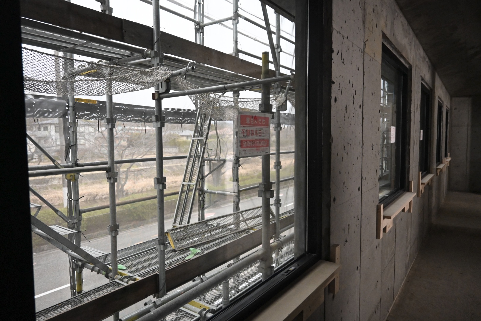 窓枠やガラスが設置されました。