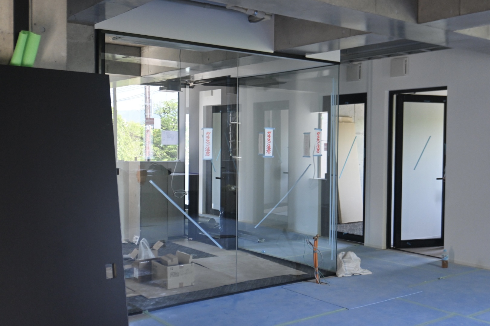ガラス窓や扉、照明、手洗い場など少しずつシェアオフィス部分の設備が充実してきました。